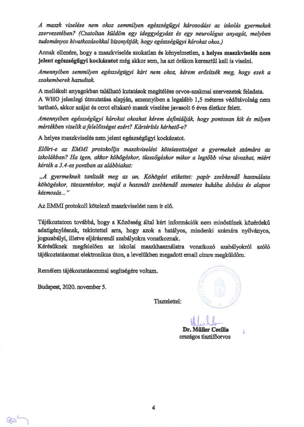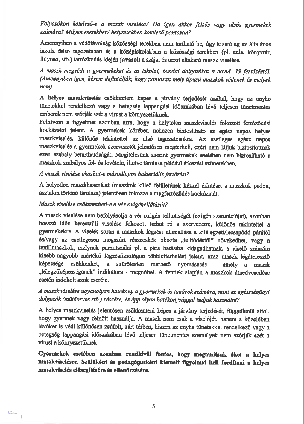 Hivatalos állásfoglalás iskolai maszkviselés ügyében